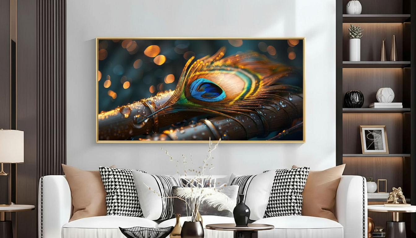 - Versatile Placement: Whether used as a Peacock photo frame for wall decoration in bedrooms, living rooms, or pooja corners, its sophisticated design complements a variety of wall decor photos for living room or modern art for living room themes.